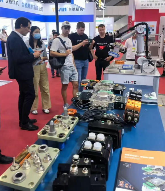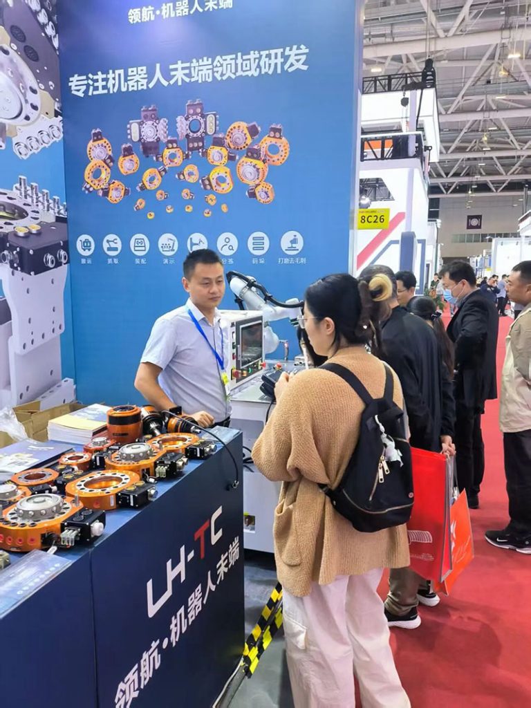 在领航展位,机器人工具快换装置工作站吸引众多目光:在数秒内完成不同工具的精准切换,从应用不同夹爪搬运到打磨,整个过程流畅高效。